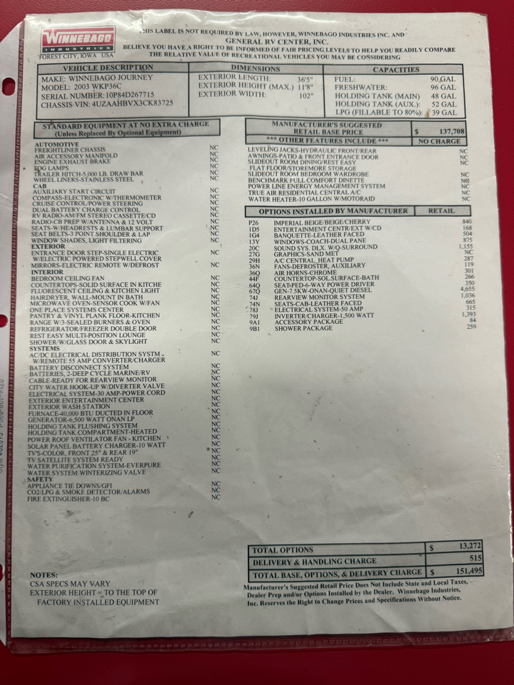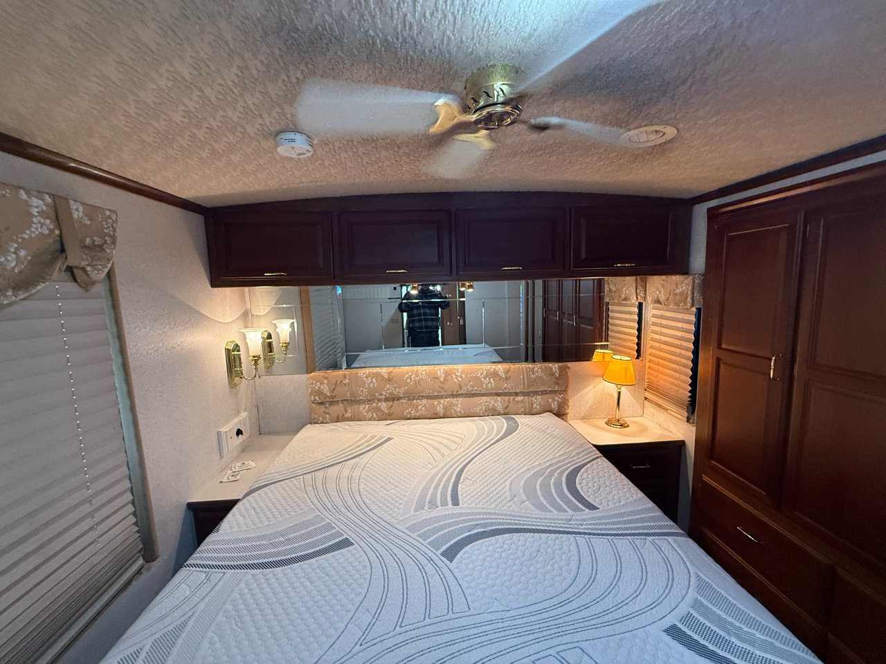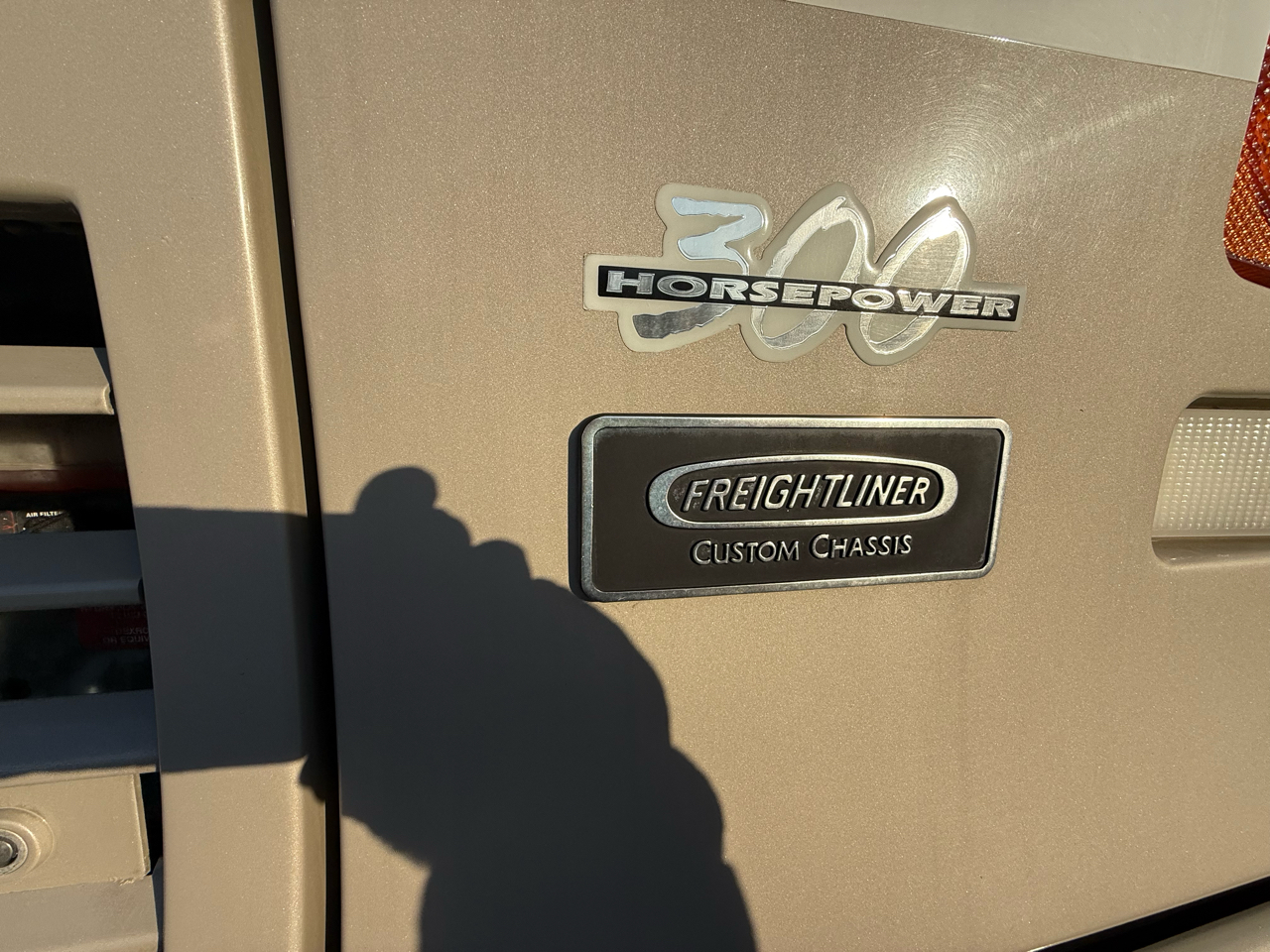 7.5kw Onan quiet diesel generator, newer tires, 5,000 pound trailer hitch, freightliner chassis, 5.9L Cummins diesel, rear bedroom, rear camera, upgraded stereo and electronics, hydraulic leveling jacks, 36'5" length, 11'8" exterior height, 8.5'5" exterior width, 108.4 cu. ft. storage, 6'8" interior height, 8' interior width, 96 gal fresh water capacity w/ heater, 48 gal black water tank, 52 gal grey water tank, 39 gal LP capacity, 90 gal fuel capacity, 28,000lbs GCWR, 26,850lbs GVWR, 9,350lbs GAWR front, 17,5000lbs GAWR rear, 228" wheelbase, call for more info.