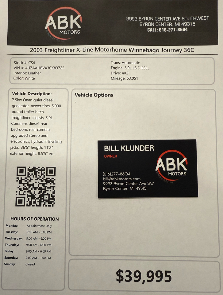 Message: Thought you might be interested in this 2003 Freightliner X-Line Motorhome.